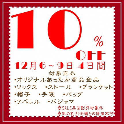 12月6日~9日の4日間、緊急SALEを開催いたします!