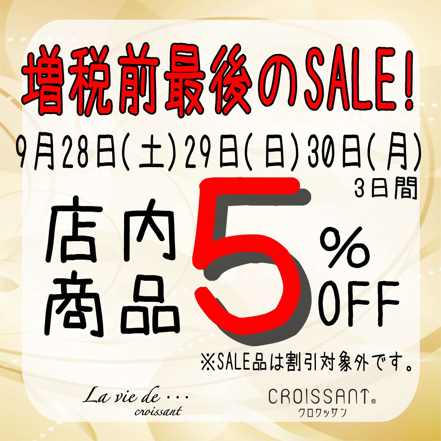 明日9月28日(土)~9月30日(月)の3日間、増税前最後のSALEを開催します!