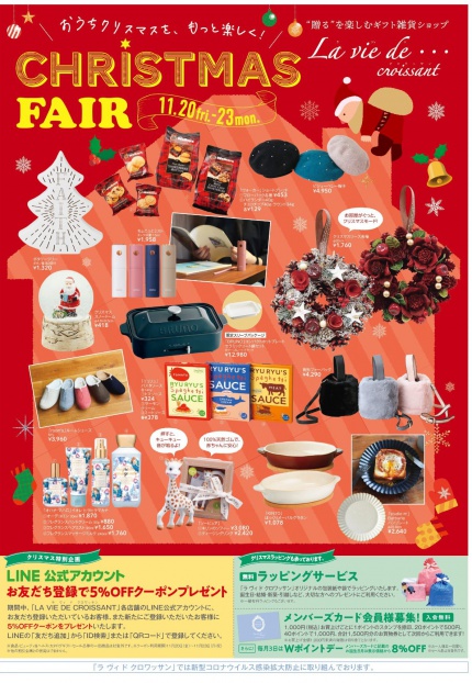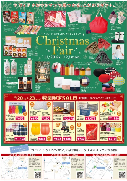 11/20(金)~11/23(月祝)、ラヴィドクロワッサン豊田店・浜松店・草津店3店舗合同クリスマスフェア開催!