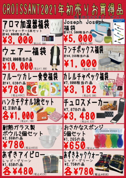 2021年の初売り&福袋のご案内です!