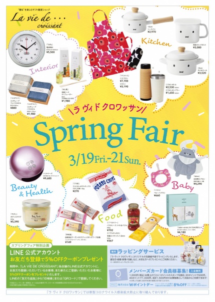 3/19(金)~3/21日(日)、ラヴィドクロワッサン豊田店、浜松店、草津店3店舗合同SPRING FAIR開催!