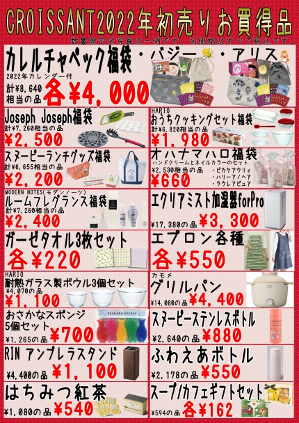 ※京都ファミリー店では福袋及び新春特価商品のお取扱いはございません。