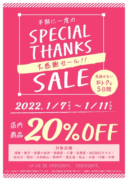 いつもクロワッサン・ラヴィドクロワッサンをご利用くださる皆様に感謝の気持ちを込めて……