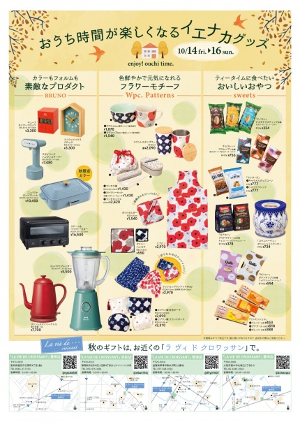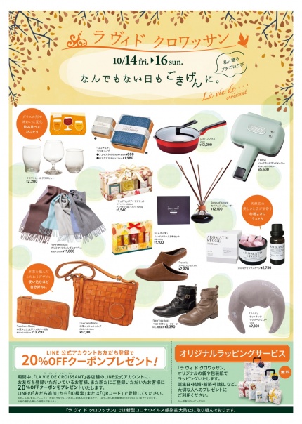 10/14(金)~10/16(日)の3日間は、ラヴィドクロワッサン豊田店、浜松店、草津店、豊中店に秋を楽しめるステキなアイテムがいっぱい!