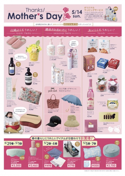 「お家の中で癒される」「お出かけが楽しくなる」「おいしくてうれしい」貰ってうれしい春の暮らしが楽しくなる母の日にピッタリのステキな商品を多数取り揃えております。