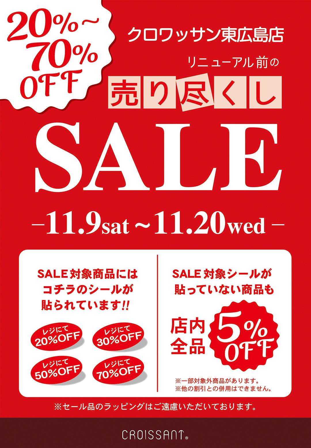 ※本SALEは、クロワッサン東広島店のみでの開催となります。