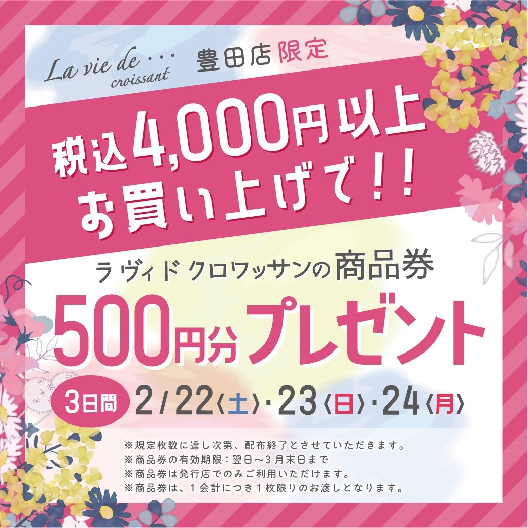 豊田店限定¥500商品券プレゼントキャンペーン♪