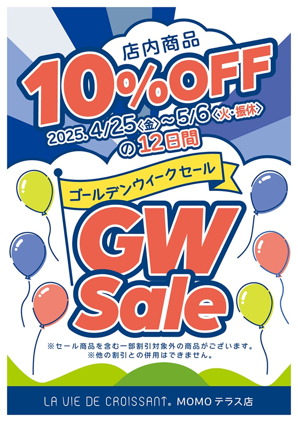 ラヴィドクロワッサンMOMOテラス店限定!ゴールデンウイークSALE♪