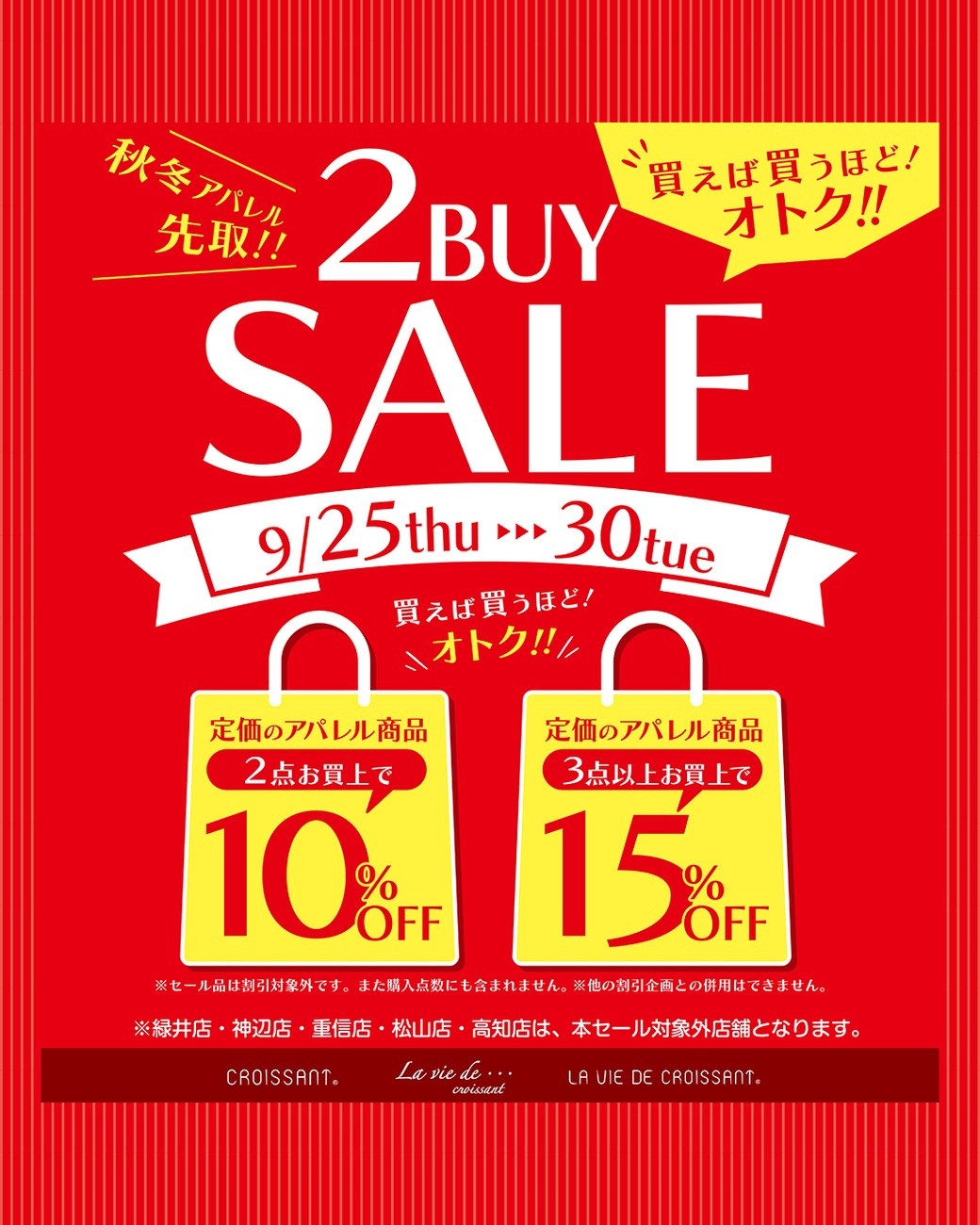 9/25(木)~9/30(火) アパレル2BUY SALE♪