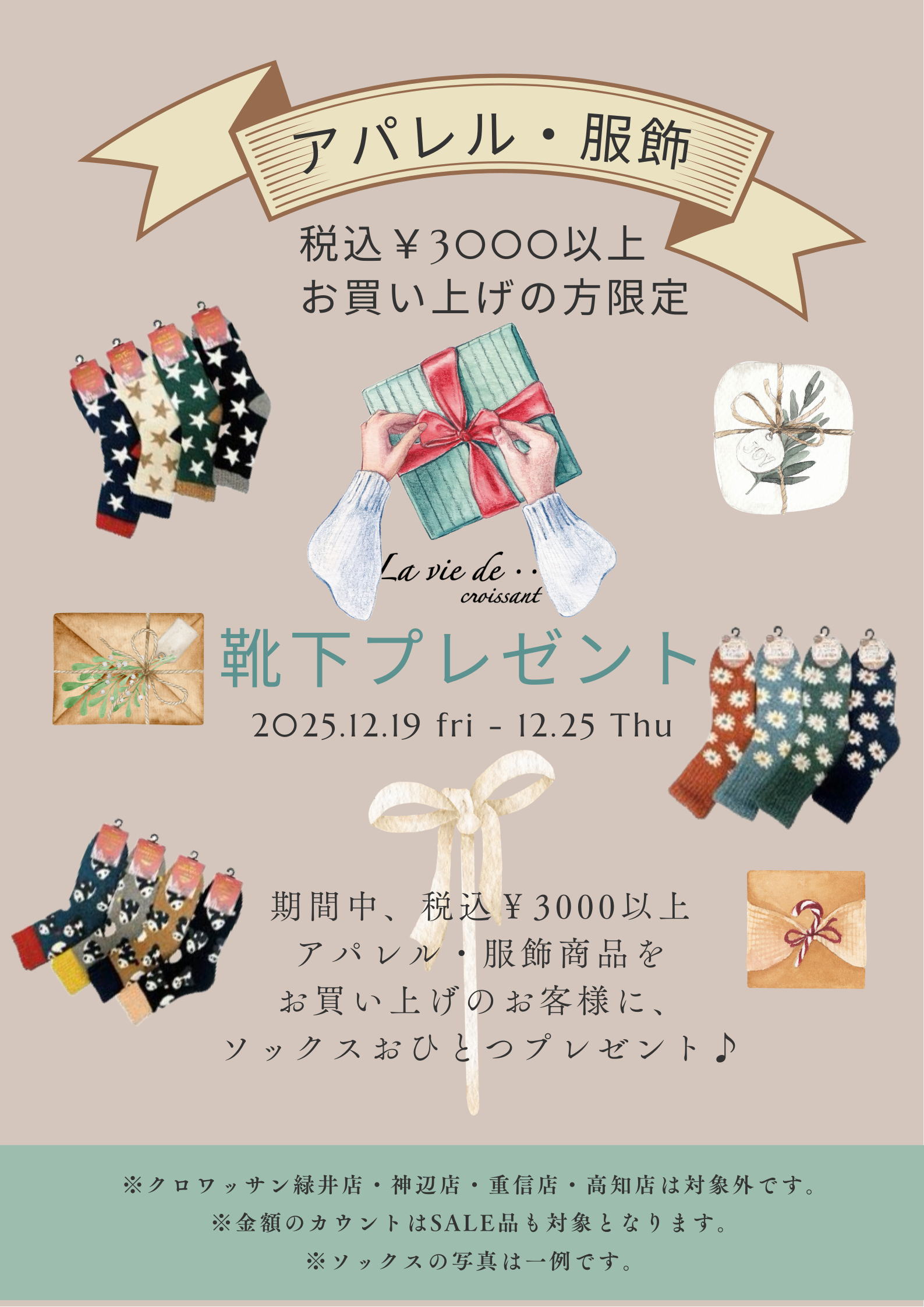 アパレル・服飾税込¥3000以上お買い上げのお客様に