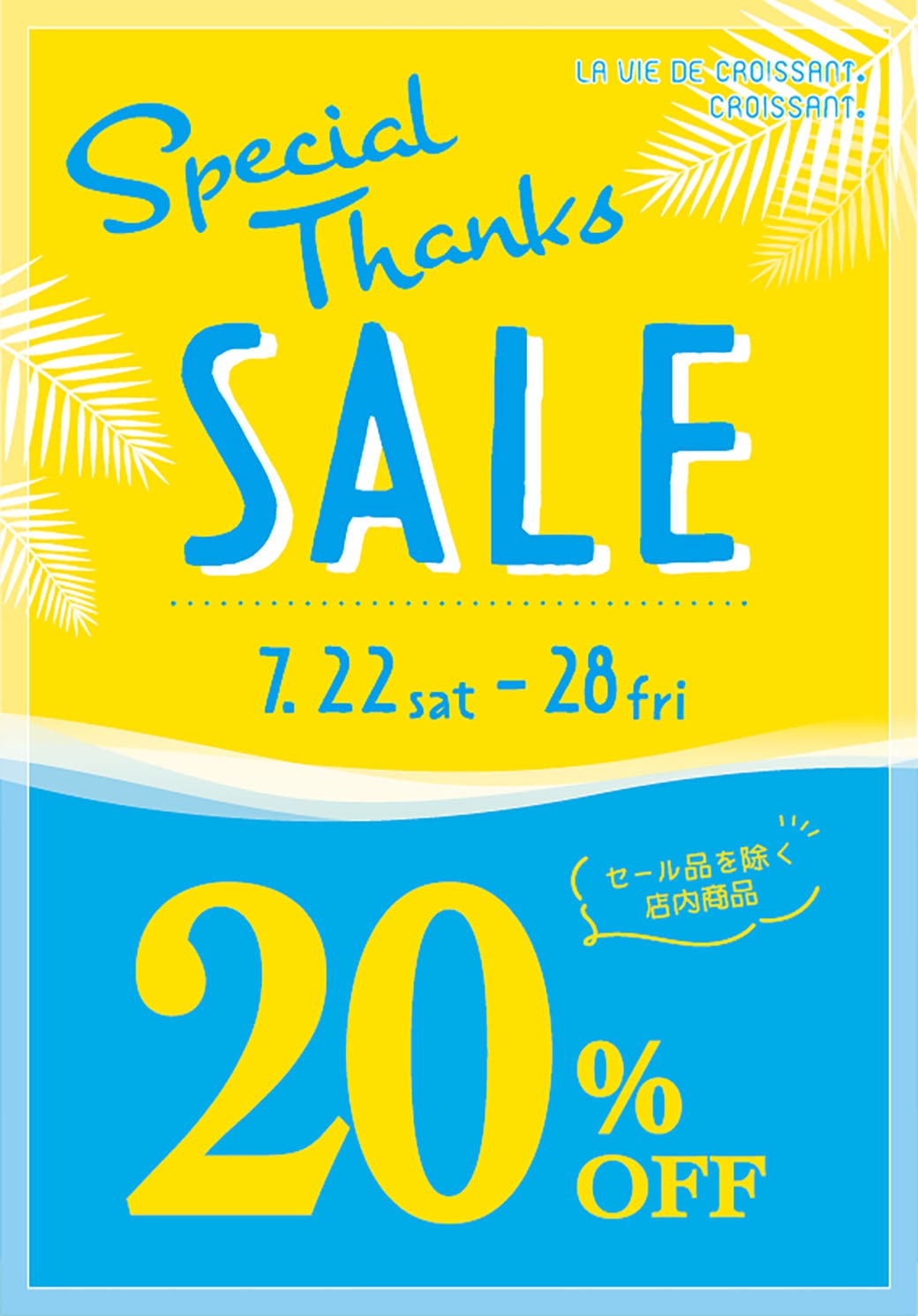 店内商品のほとんどが無条件で20%OFFで購入できるチャンス!