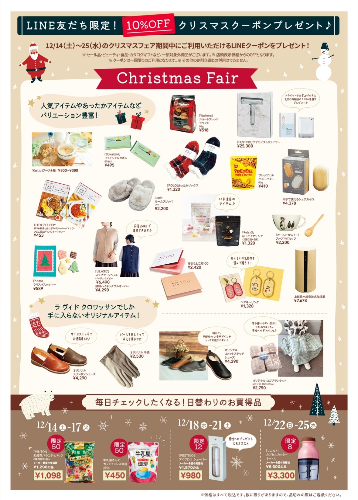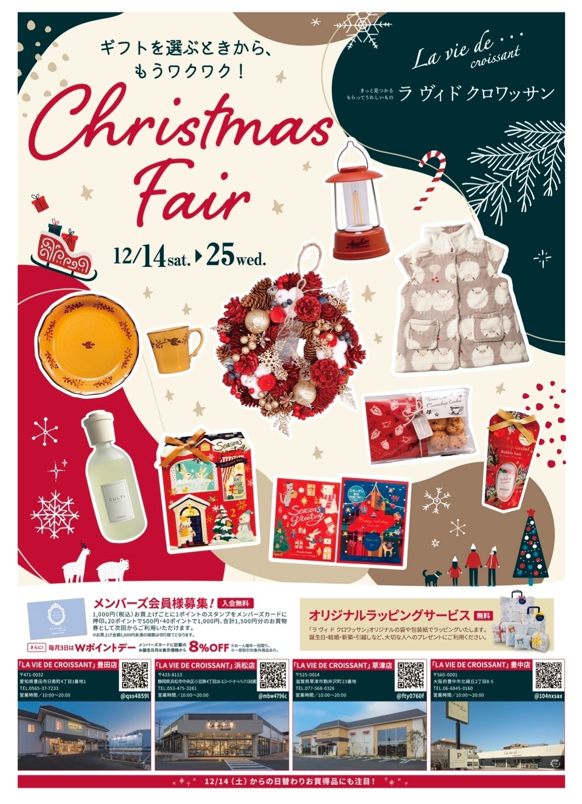 12/14(土)~12/25(水)の期間中クリスマスフェアを開催いたします!