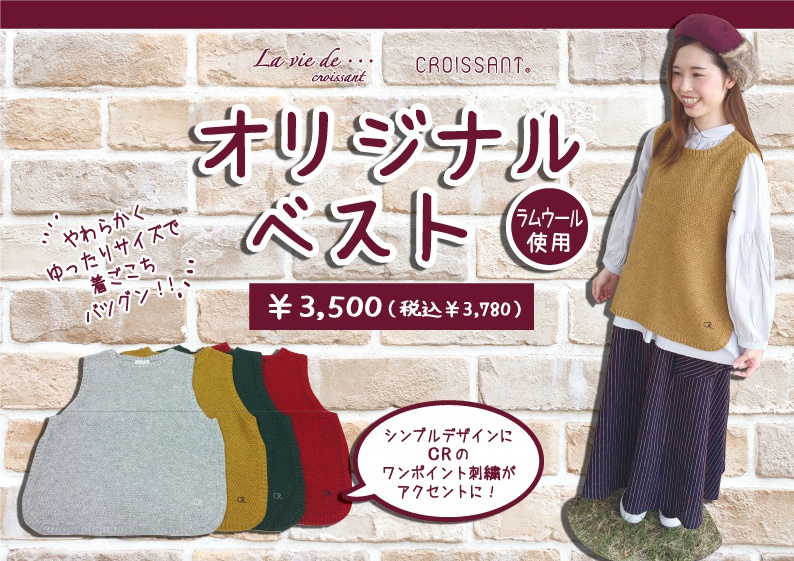 クロワッサンオリジナルベストが入荷してます!
